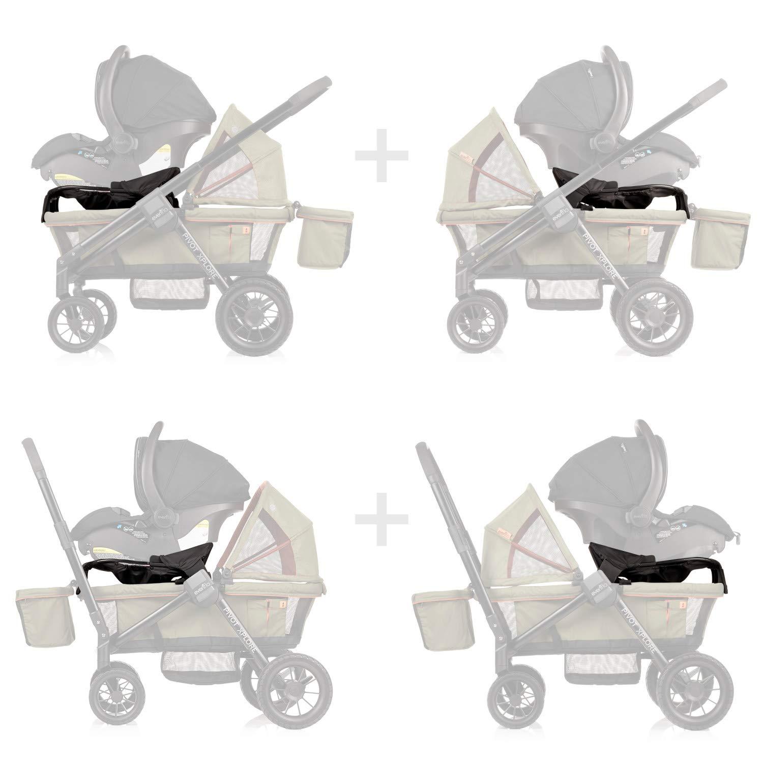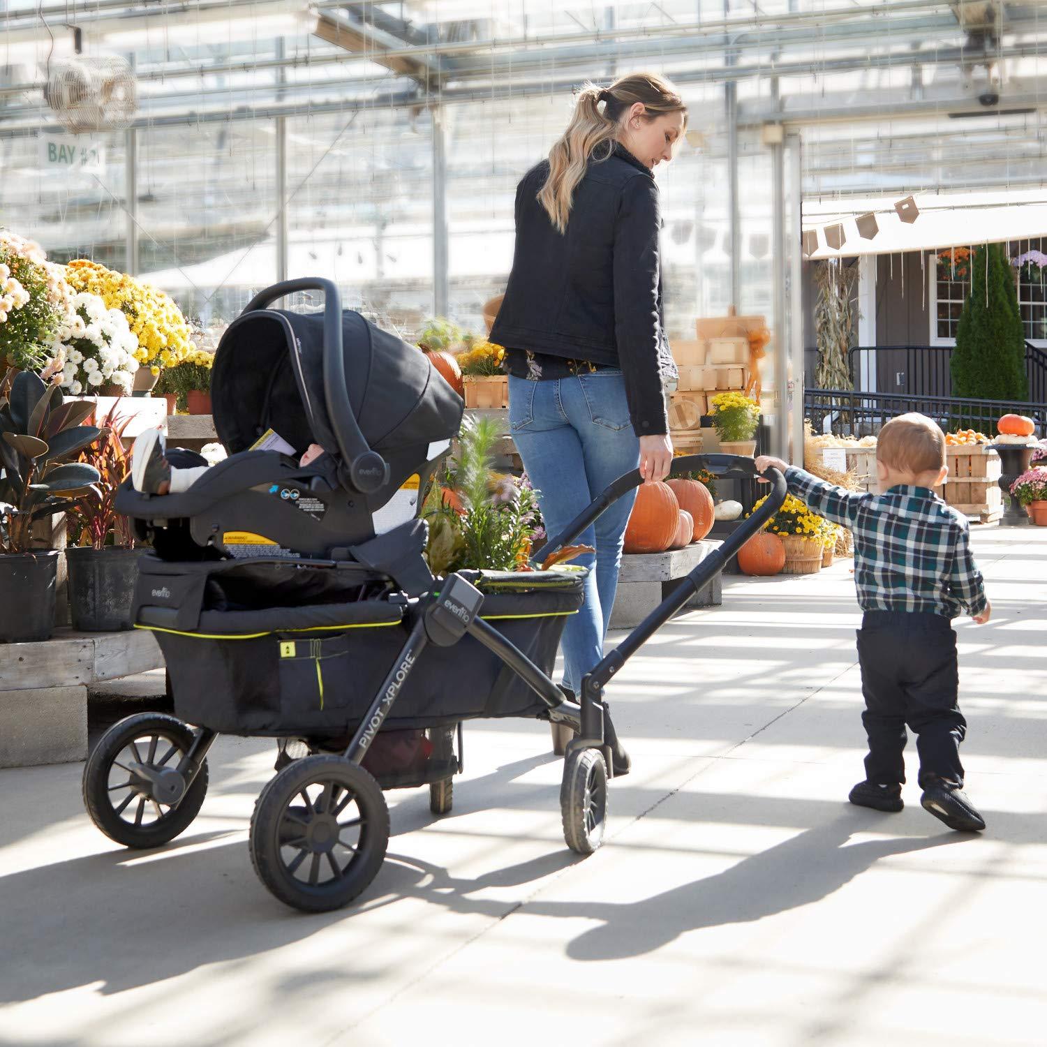 The Evenflo Pivot Xplore Infant Car Seat Adapter makes the transition from car to the wagon quick and easy to get you rolling with two kids in tow. Simple in-and-out functionality without any tools to get you on your way. Just slide and click the adapter onto the Pivot Xplore frame and then place in your car seat with ease. Remove the adapter with a quick push button release. Whether your baby wants to face you or face the world, this modular Infant Car Seat Adapter is reversible to be forward-facing or parent-facing. Whether you want to push or pull your Pivot Xplore, just flip the wagon’s handle without even removing the car seat. Elevated placement of the car seat with adapter still allows space for a second child rider to sit comfortably in the wagon along with all your child care necessities.